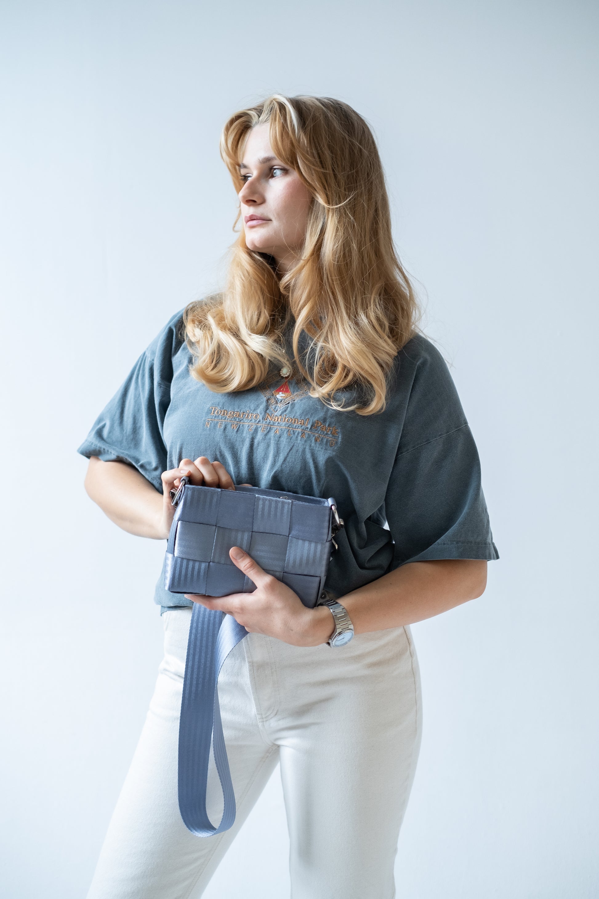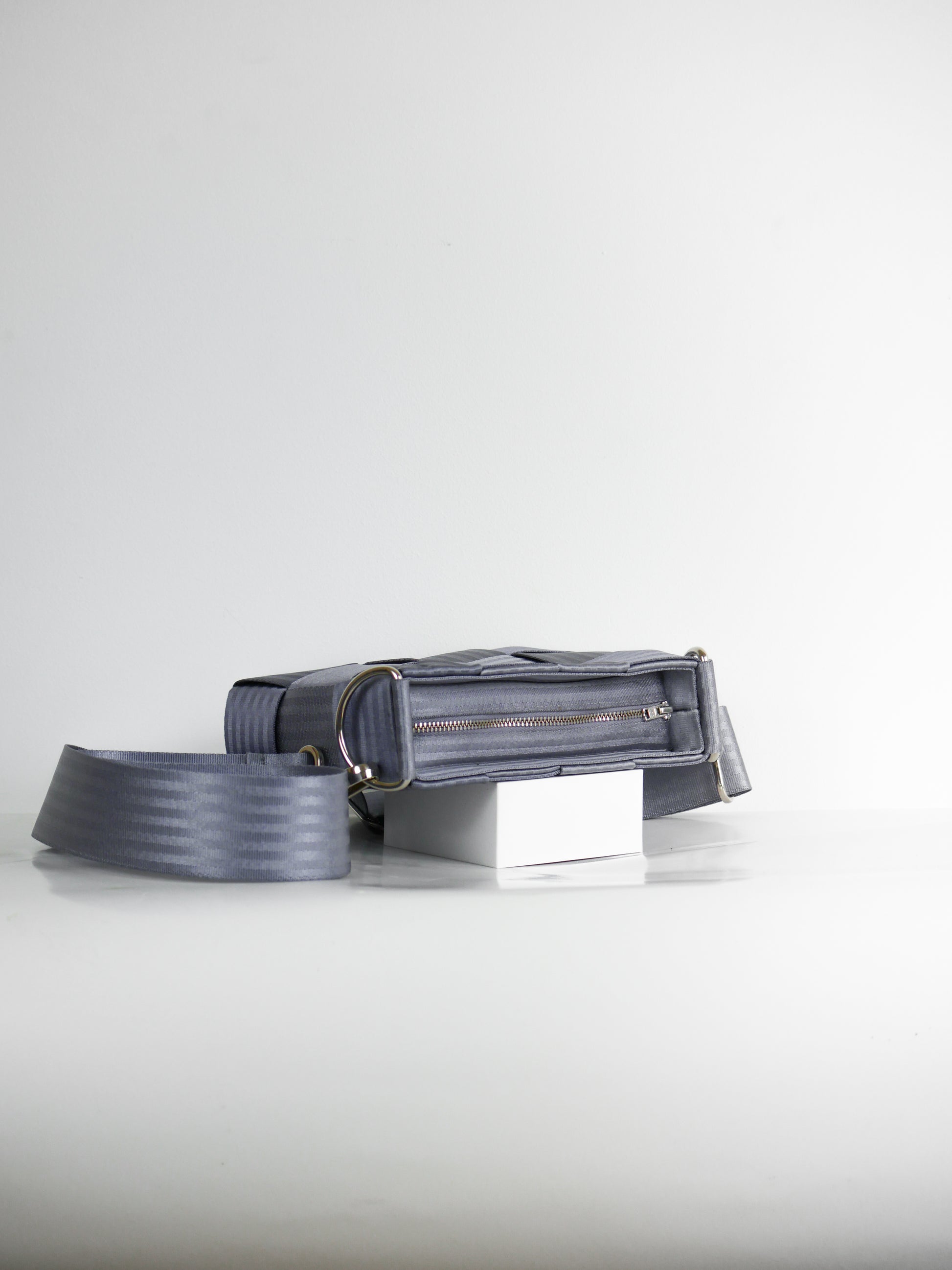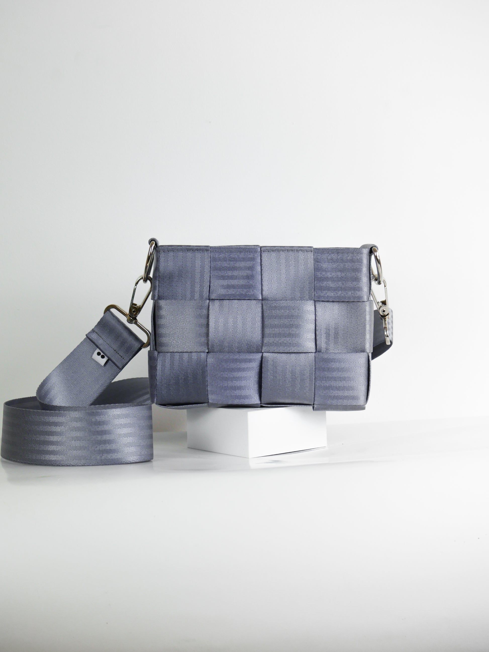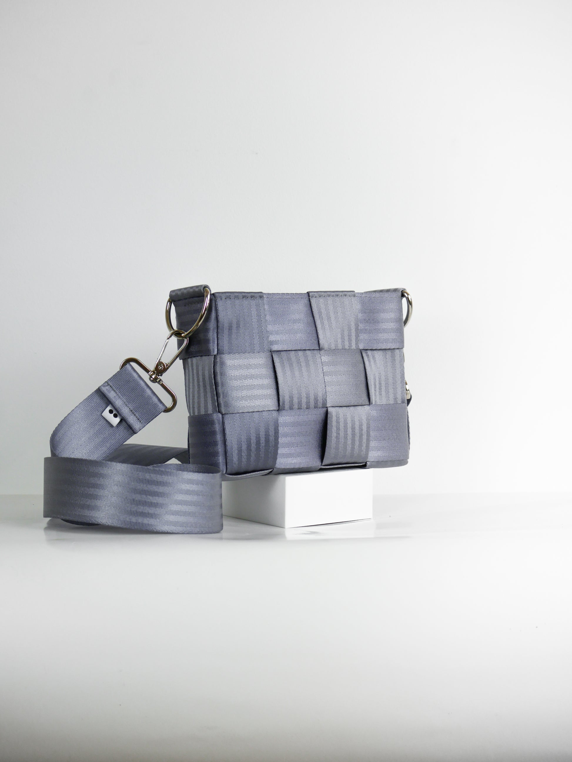 Torebka pleciona z pasów samochodowych | GOŁĘBIA SZAROŚĆ
